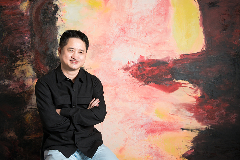 Robert’s early paintings are all Rose themed, and this theme is well received among the art circle. In 2003, his painting was selected as a visa credit card cover, and this is the first honor amongst all Chinese artists. He also participated in designing the “ Prince William and Kate’ commemorative wedding” porcelain collection for Aynsley. In 2012, Robert started to study aesthetics at TsingHua, and his creations moved from the rose theme into modernist abstraction. His thirty year career as a painter was influenced greatly by Paul Cezanne, Henri Matisse, William Kooning, Umehara Ryuzaburo, and Chi-Chung Liao. Hence, Robert’s art is both chauvinistic and impressionistic. His works consist of four major subjects: Portraits, Rose themed paintings, Landscape, and abstraction; the first three belong to realism and the last belongs to abstraction. The development of the four subjects indicate Robert’s aesthetic direction of his art: from poetism moving into art creations, and from art creations moving into abstract ideas.