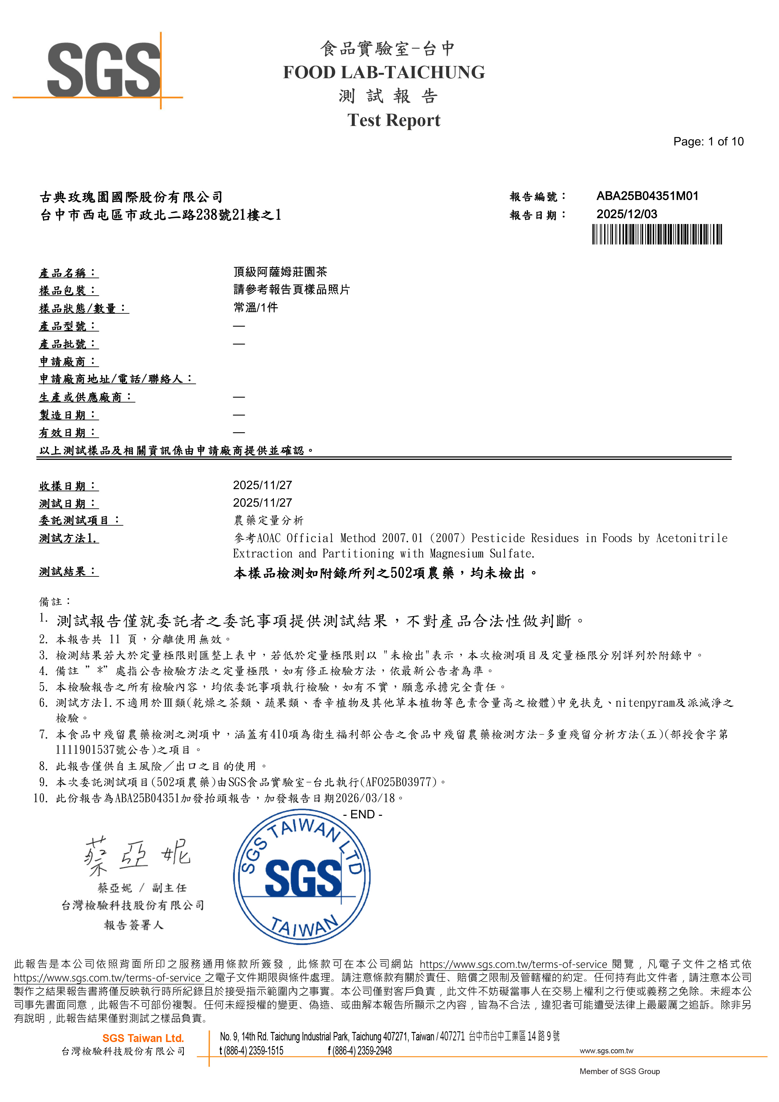 「喝最好喝的茶就在古典玫瑰園」古典玫瑰園所供應的英國茶、花草茶主要來自英國、德國、加拿大進口。阿薩姆茶、大吉嶺茶、錫蘭茶則來自茶園原產地。我們的茶品於運抵台灣時都會將樣本親送至SGS嚴格檢驗,且必須符合食藥署農藥檢測標準才會包裝上市。多年來有關各項茶葉及食安,古典玫瑰園均通過衛生單位嚴格標準要求,品質安心。