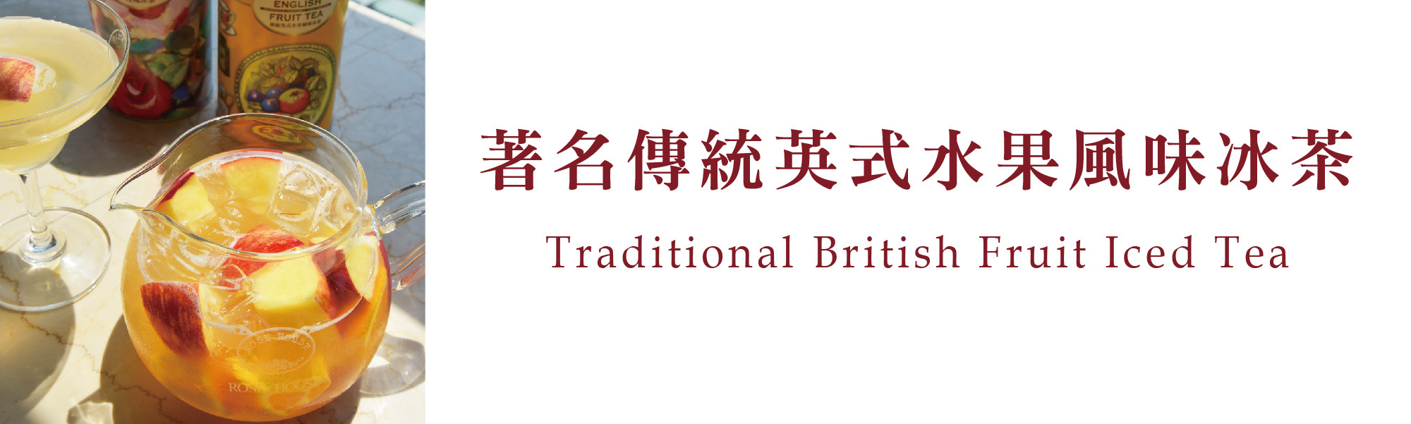 此款茶以綜合果汁搭配新鮮水果,加入精選紅茶調製而成,口感新鮮豐富,是古典玫瑰園創店以來最具口碑的招牌茶飲。