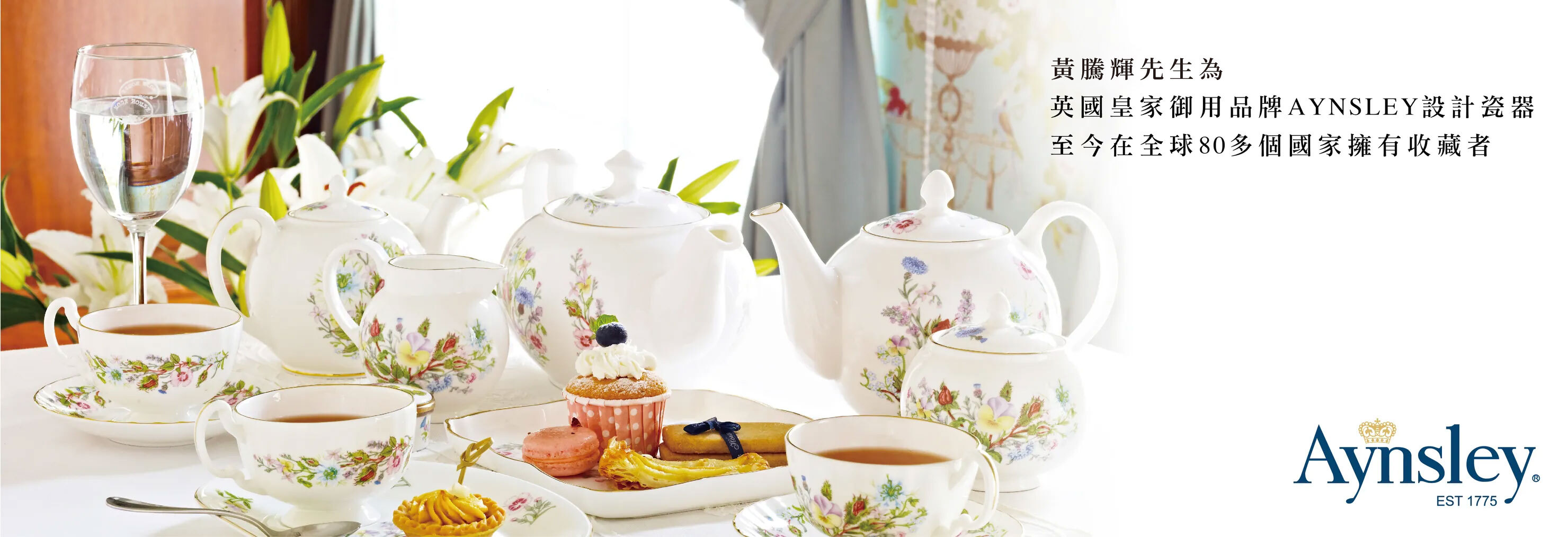 英國皇家百年御用名瓷,包括273年歷史的Royal Crown Derby、248年歷史的Aynsley和白金漢宮官窯的Royal Collection等皇家名瓷,收藏及使用最高品質英國骨瓷。
