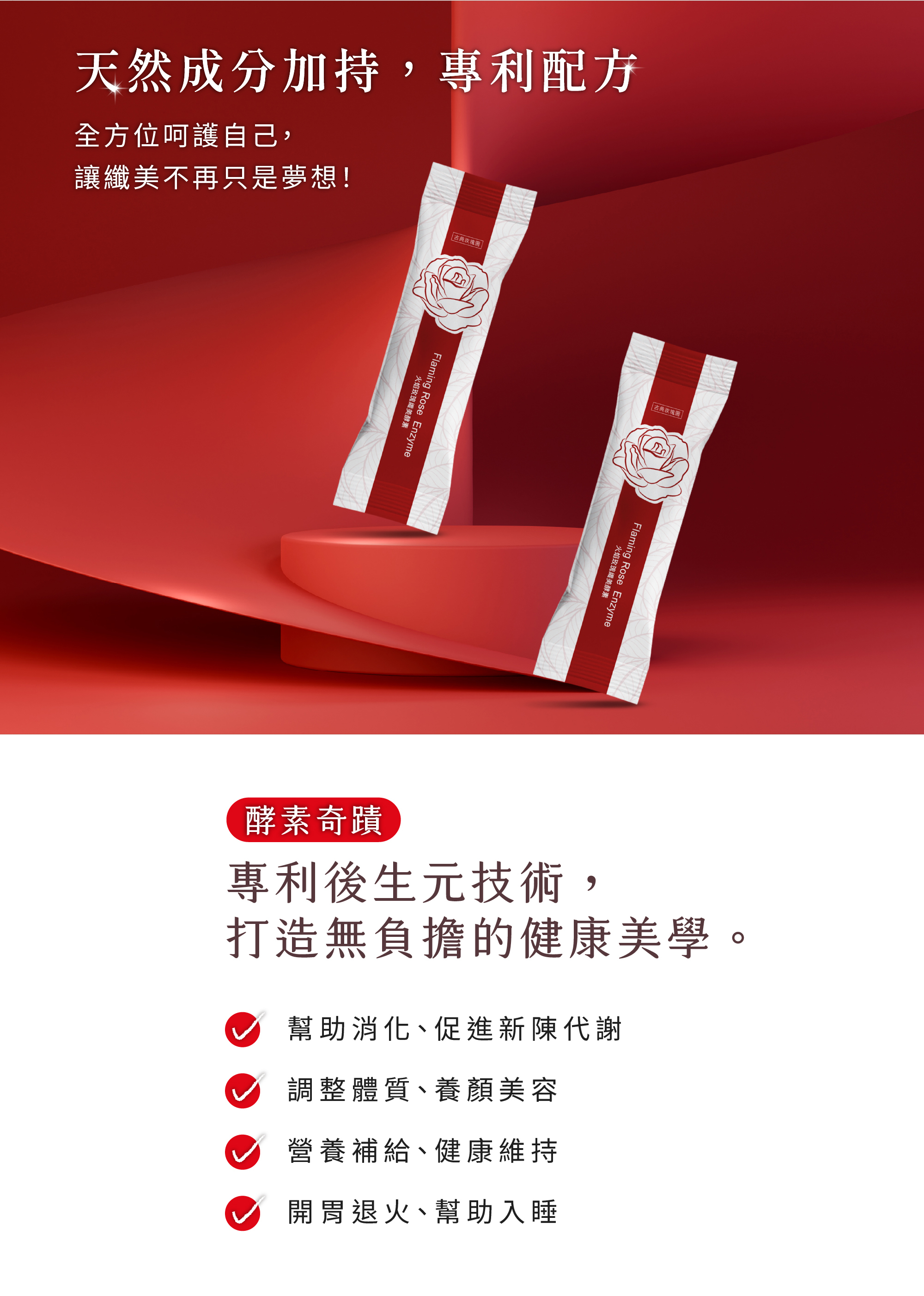 「火焰玫瑰」纖美酵素是古典玫瑰園全新推出的纖美名品,專為25至55歲女性設計。全方位探索呵護自己,一起和您探索內外皆美的健康秘密!