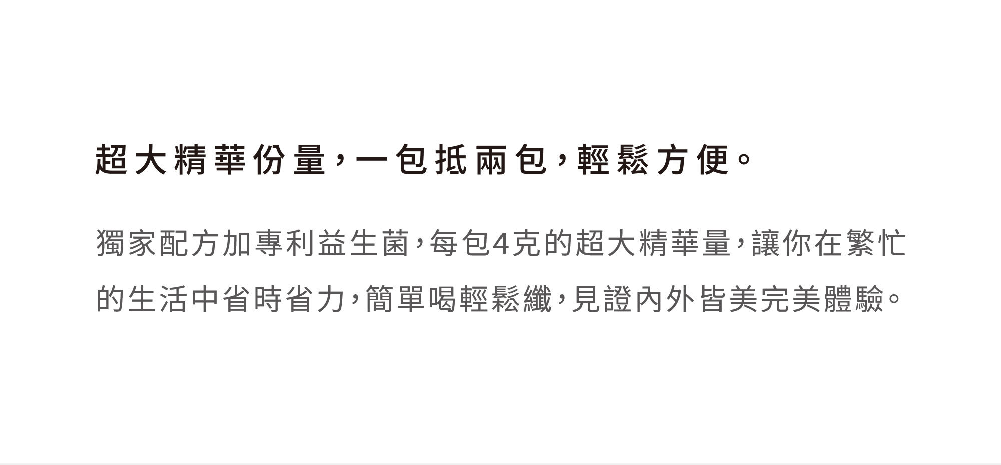 4. 超大精華份量,一包抵兩包,輕鬆好喝