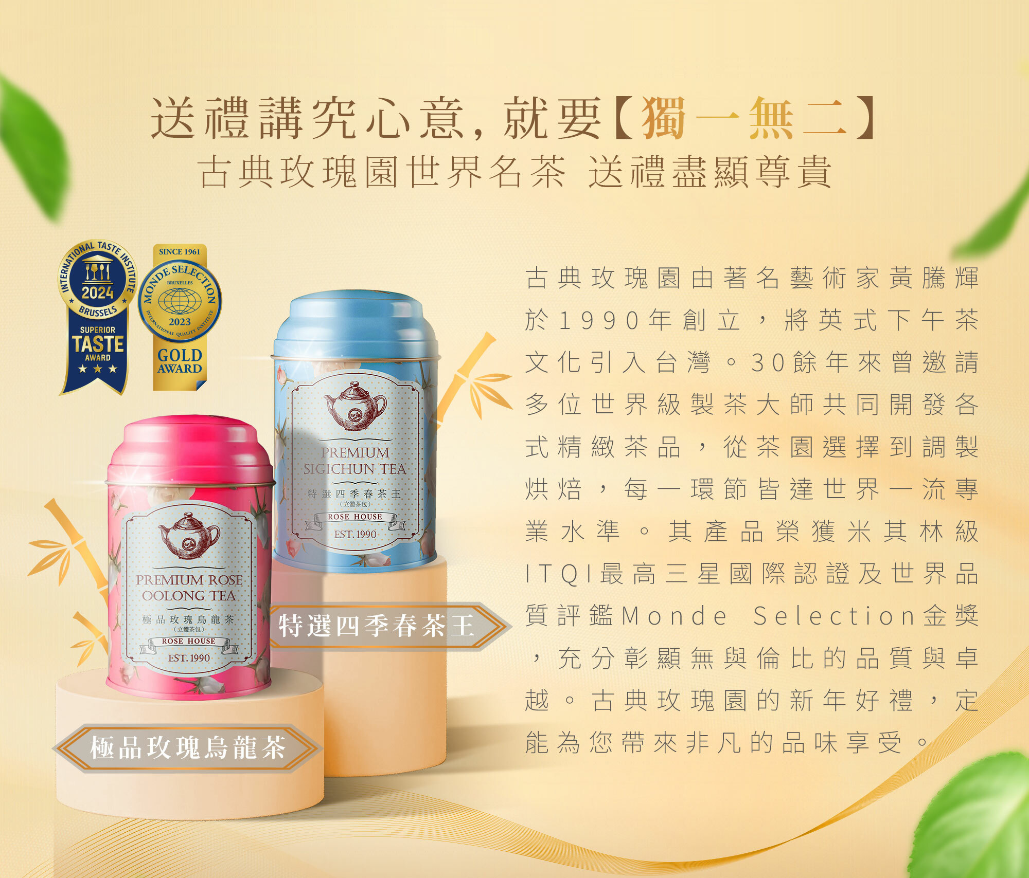 由多位世界級製茶大師精心設計的珍貴茶品,搭配充滿藝術氣息的禮盒,讓您的贈禮更具獨特魅力,遠離俗套。不論送給誰,都能完美展現您的高雅品味與對精緻禮品的深厚心意。